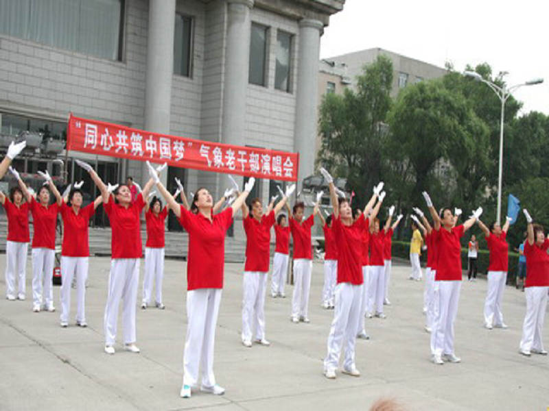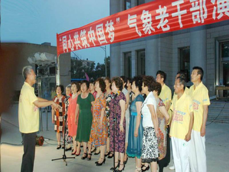 7月7日晚省气象台大院的广场上舞姿优美、歌声嘹亮,这是由省气象局离退休办倡导、省气象台大院活动中心主办的“同心共筑中国梦”气象老干部演唱会。大院职工观看了演出。
